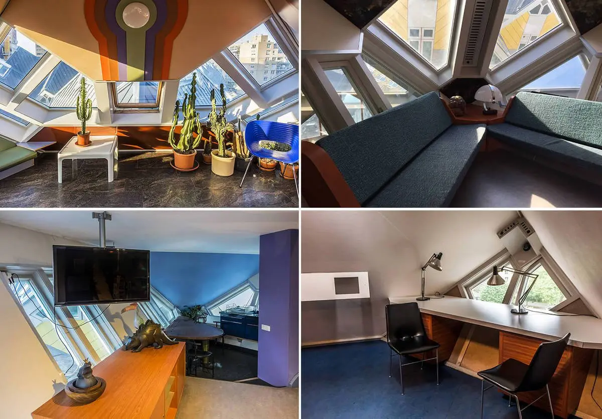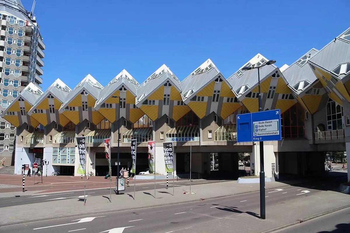 مجموعه خانه های مکعبی روتردام شامل 38 مکعب کوچک و دو «ابرمکعب» بزرگ تر است که همگی به هم متصل شده اند و در بالای خیابان اوربلاک (Overblaak) و درست بالای ایستگاه متروی بلاک قرار دارند.