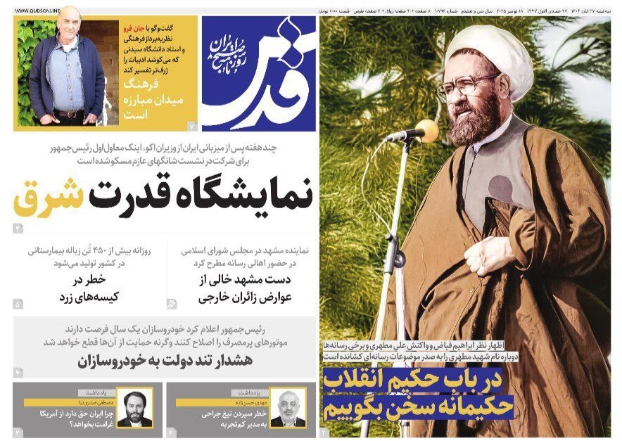 سهشنبه ۲۷ آبان ۱۴۰۴ - ۰۹:۲۳ شناسهٔ خبر: 75875933 - سرویس علمی-فناوری نسخه قابل چاپ منبع: تسنیم | لینک خبر صفحه اول مطبوعات سه شنبه 27 آبان/عصر جدید توسعه در بهشت تصاویر منتخب صفحات نخست روزنامههای یه شنبه 27 آبان منتشر شد. صاحبخبر - انتهای پیام/ ∎