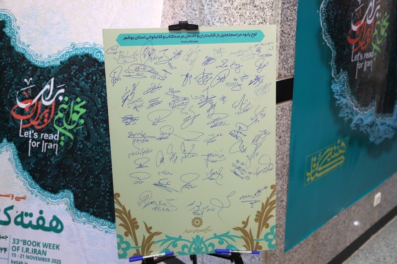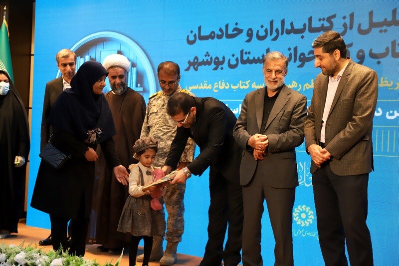 مراسم تجلیل از کتابداران، فعالان و خادمان عرصۀ کتاب و کتابخوانی و آیین رونمایی ملی از تقریظهای مقام معظم رهبری بر سه کتاب دفاع مقدس، همزمان با سیوسومین دوره هفته کتاب جمهوری اسلامی ایران با حضور جمعی از مسئولین استانی، اساتید، دانشجویان، کتابخوانان و کتابداران سراسر استان در بوشهر برگزار شد.