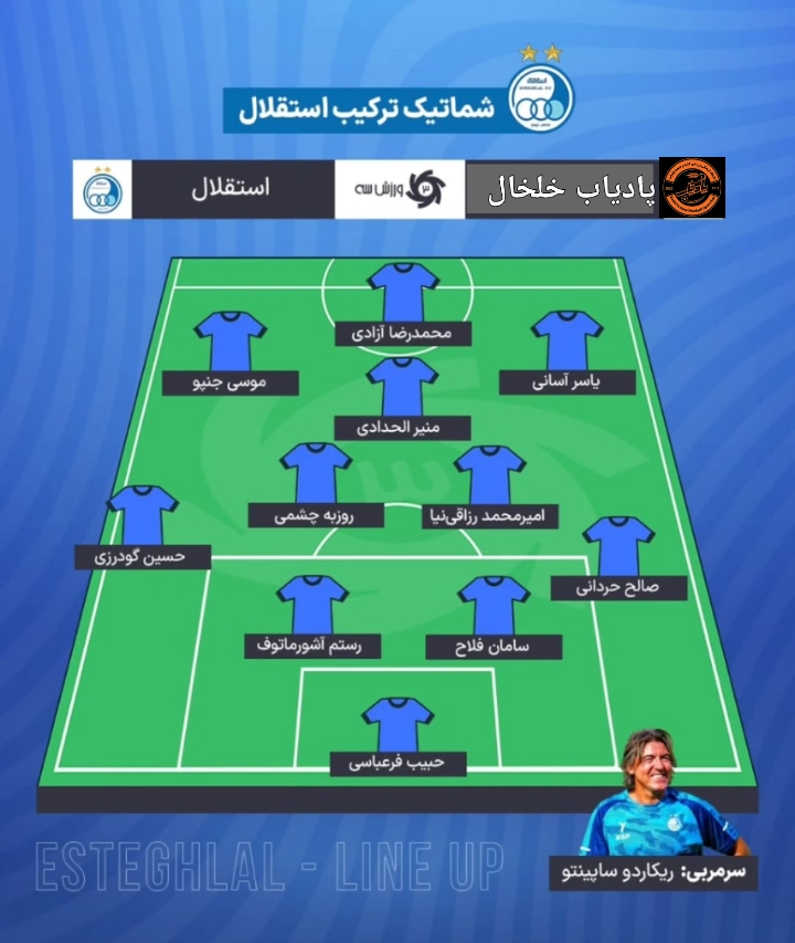 ترکیب استقلال مقابل پادیاب خلخال در مرحله یک شانزدهم جام حذفی ایران 1405_1404