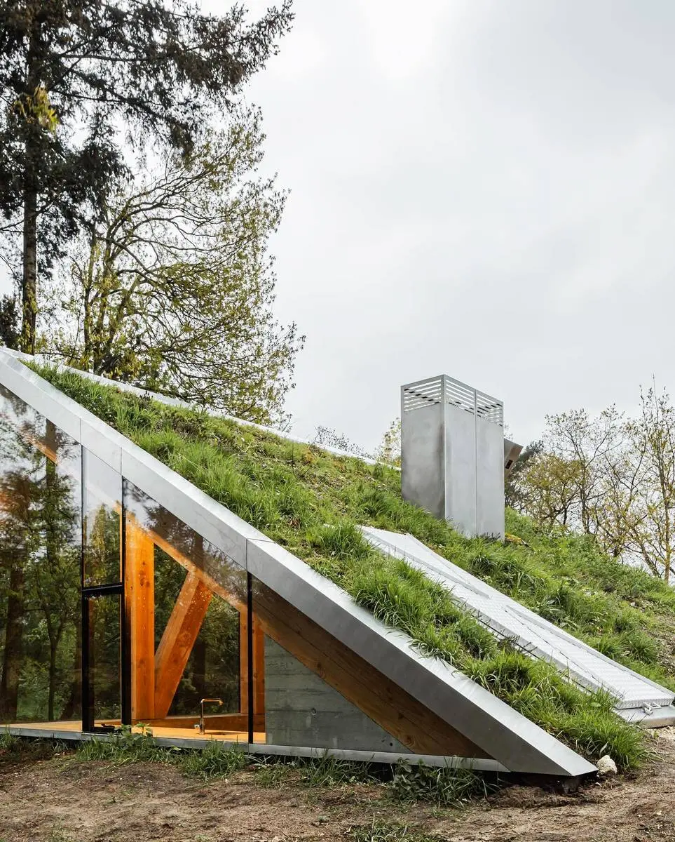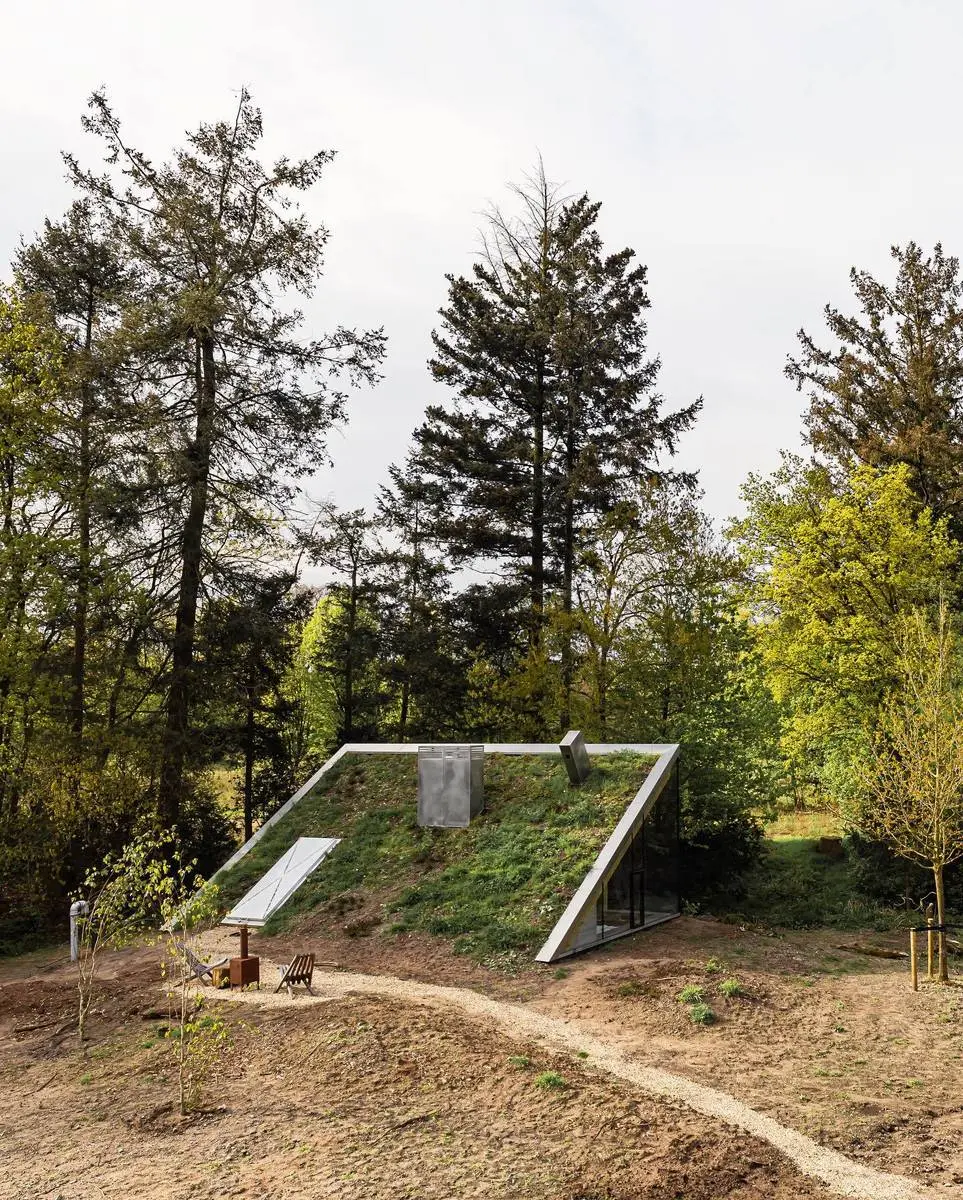 پروژه «کازِمات کونینگزوگ» که یک خانه کوچک تعطیلاتی است، توسط JCR Architecten در آرنهم، هلند، طراحی و اجرا شده است. این بنا با هدف ادغام کامل در محیط زیست، از طریق پوشش گیاهی طبیعی استتار شده و به شکلی هنرمندانه با توپوگرافی زمین ترکیب شده است.