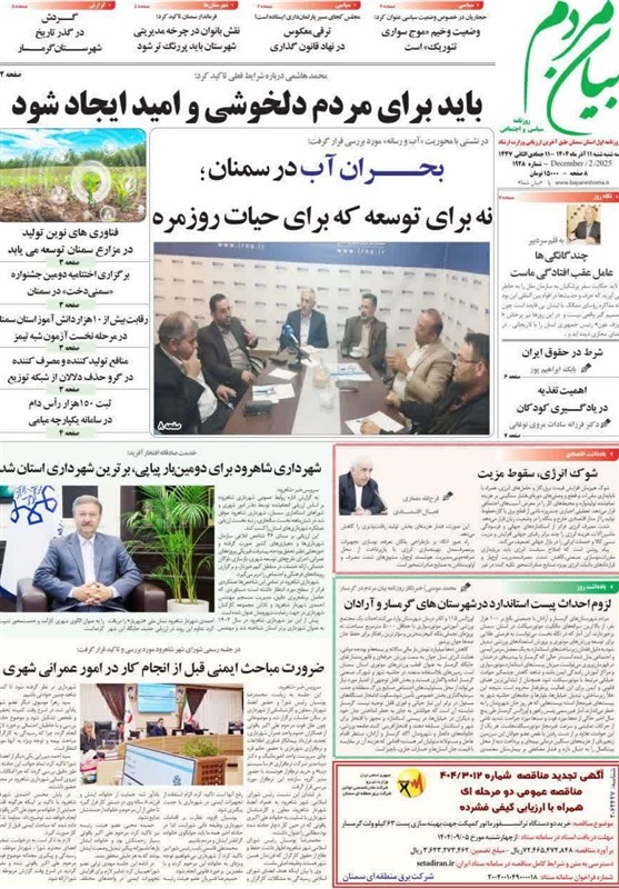 در تازهترین شماره روزنامههای محلی سمنان، محور اصلی مطالب به موضوعات متنوعی از حوزه اجتماعی،فرهنگی با استان اختصاص یافته است؛ موضوعاتی که تصویری جامع از دغدغهها و اولویتهای روز استان ارائه میدهد.