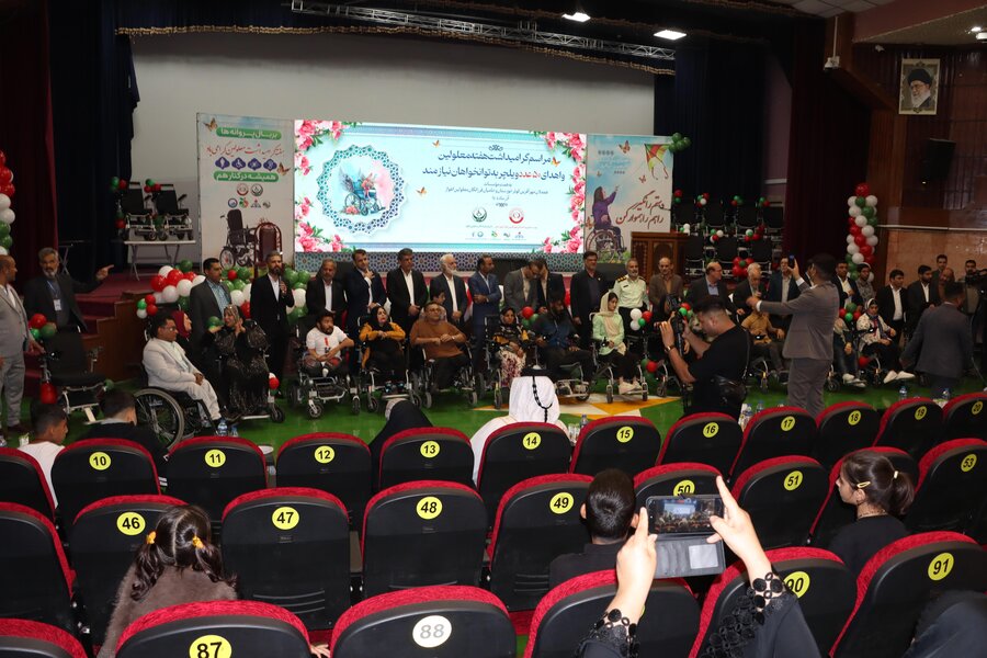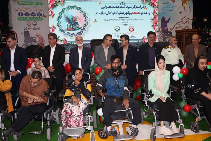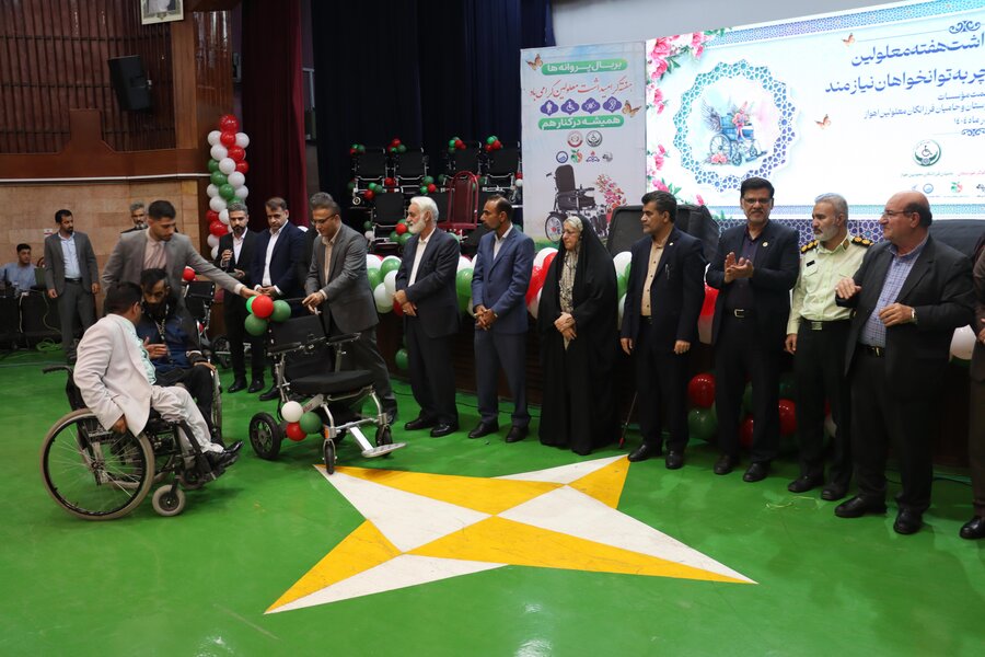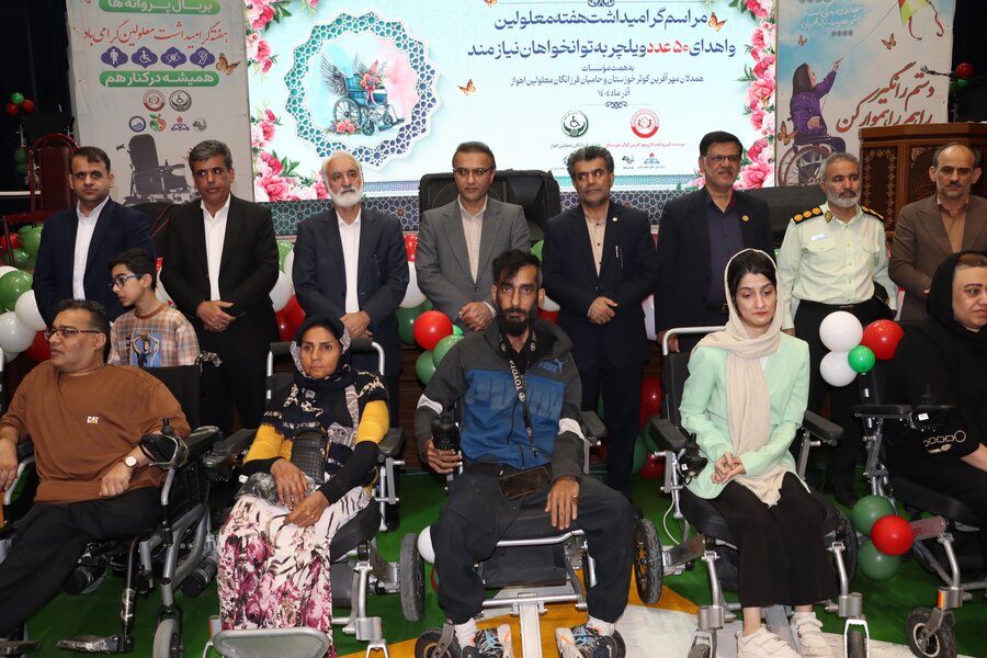 این مراسم با همکاری دو سمن فعال حوزه معلولین (همدلان مهرآفرین کوثر و حامیان فرزانگان معلولین) و با مشارکت شرکت نفت و شهرداری اهواز در سالن امامرضا(ع) شهرک نفت برگزار و طی آن، ۵۰ دستگاه ویلچر برقی اهدایی خیرین بین افراد دارای معلولیت نیازمند توزیع شد.