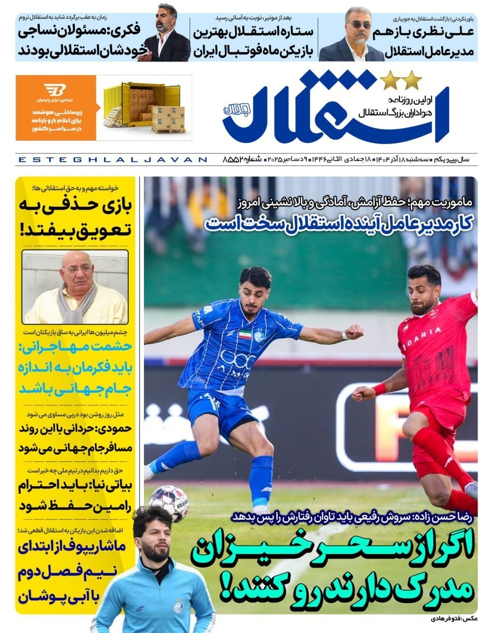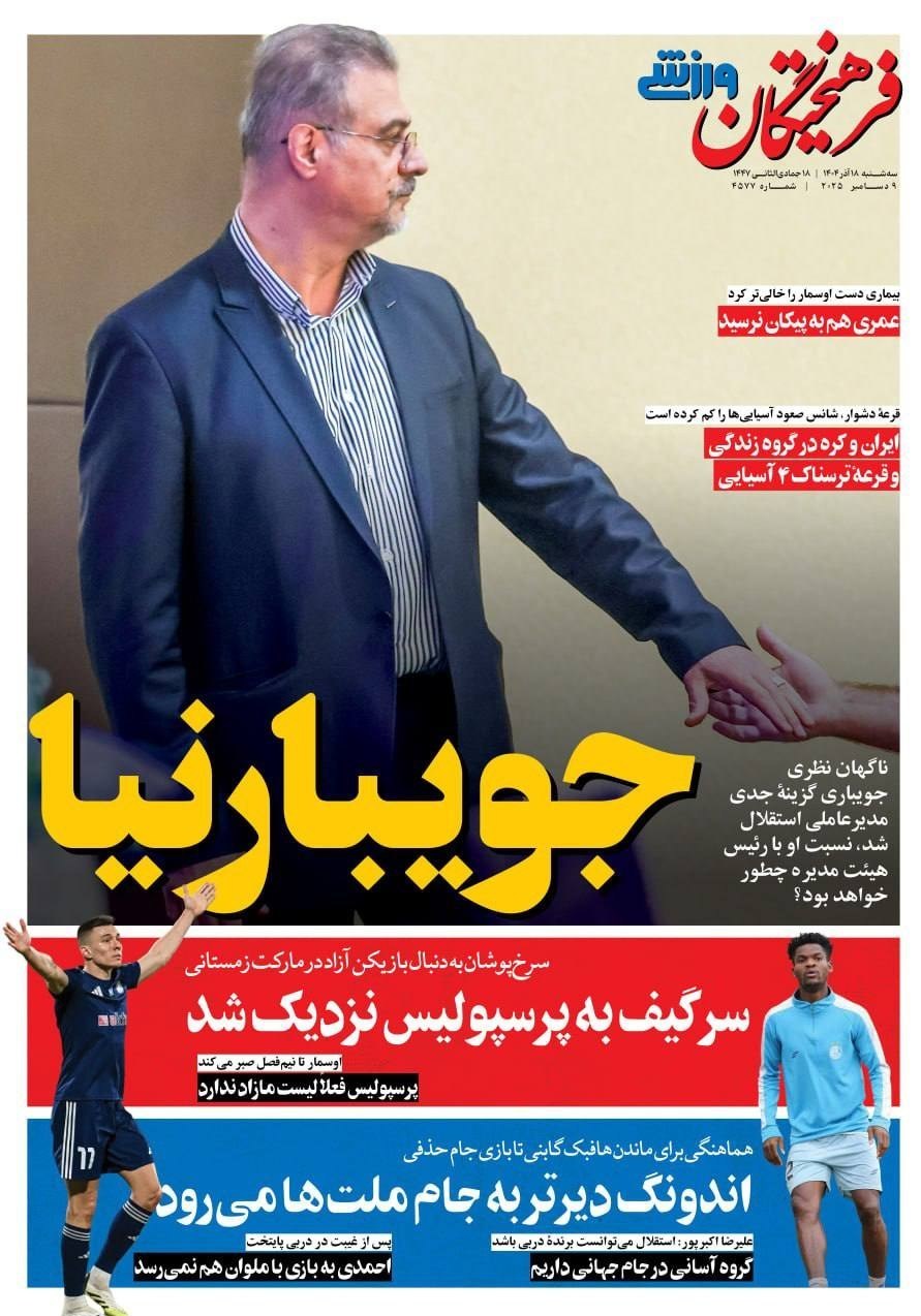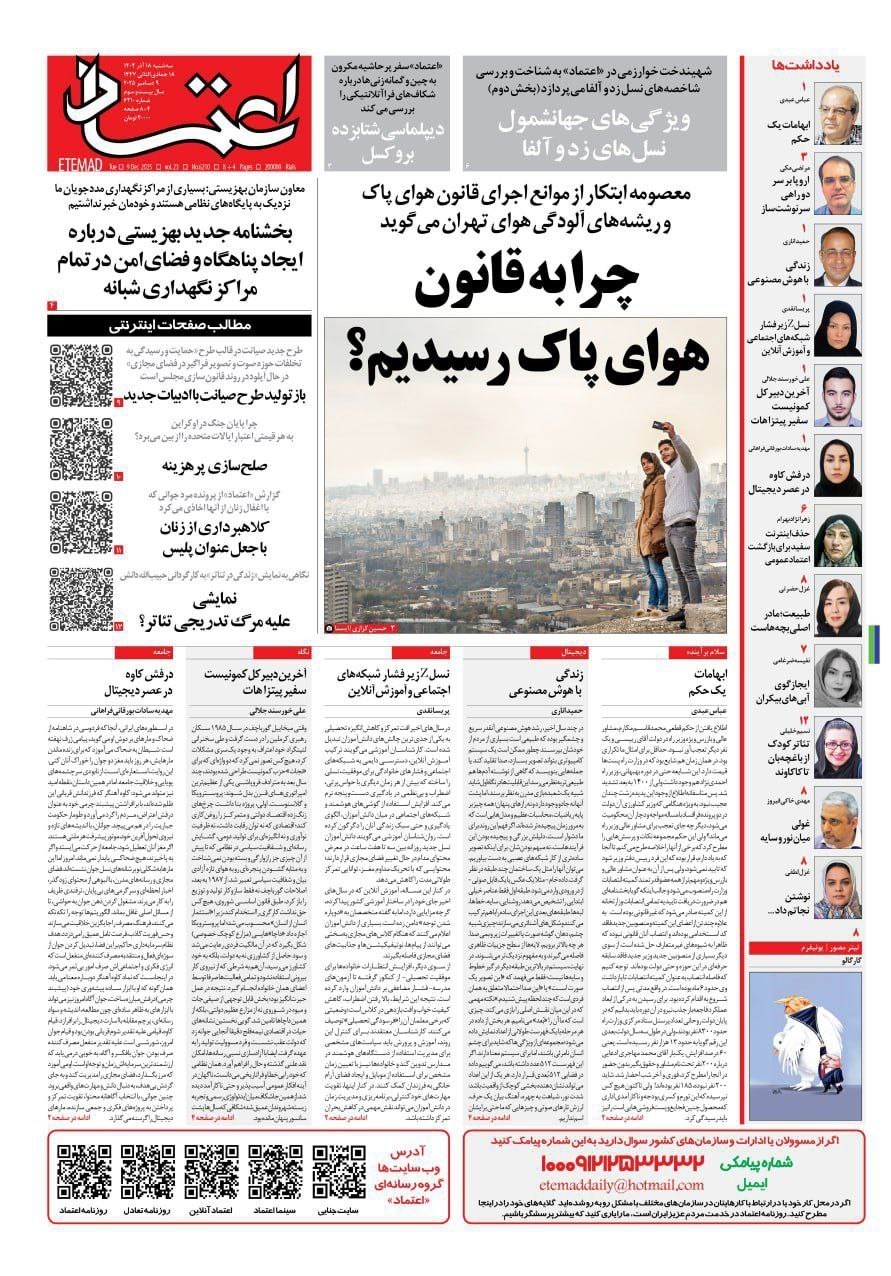 سهشنبه ۱۸ آذر ۱۴۰۴ - ۰۸:۵۶ شناسهٔ خبر: 76187582 - سرویس علمی-فناوری نسخه قابل چاپ منبع: تسنیم | لینک خبر صفحه اول مطبوعات سه شنبه 18 آذر/فکر نان سال آینده باشید تصاویر منتخب صفحات نخست روزنامههای سه شنبه 18 آذر منتشر شد. صاحبخبر - انتهای پیام/ ∎