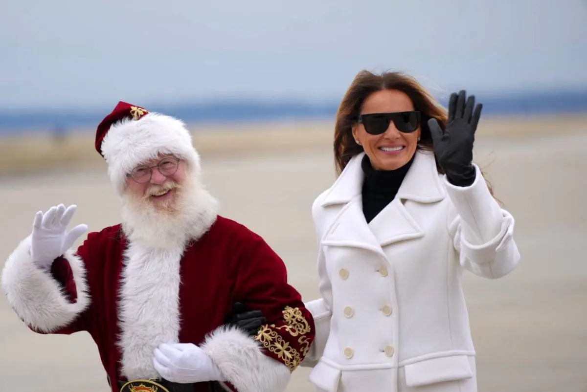 ملانیا ترامپ، با لبخند و هیجان کریسمسی، به همراه سانتا (بابانوئل) در پایگاه تفنگداران دریایی آمریکا در کوانتیکو، ویرجینیا حاضر شد تا با اهدای اسباببازی، جشن کوچکی برای کودکان خانوادههای نظامی برگزار کند. در این مراسم شاد و گرم، ملانیا ترامپ به همراه سانتا، اسباببازیهایی را به کودکان نیروهای ارتش ایالات متحده تقدیم کرد. این اقدام در چارچوب سنت کریسمس و برای حمایت از خانوادههای سربازان و تفنگداران دریایی انجام شد. تصاویر این دیدار، لحظاتی از شادی کودکان و حال و هوای جشن کریسمس را نشان میدهد.