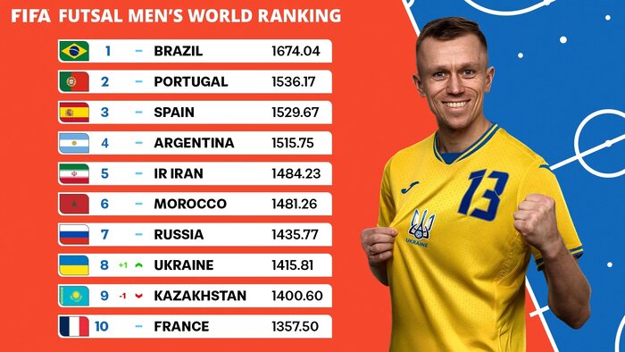 در رنکینگ برترینهای فوتسال جهان در بخش مردان، تیم برزیل در صدر قرار دارد و تیمهای پرتغال، اسپانیا و آرژانتین در ردههای دوم تا چهارم هستند.