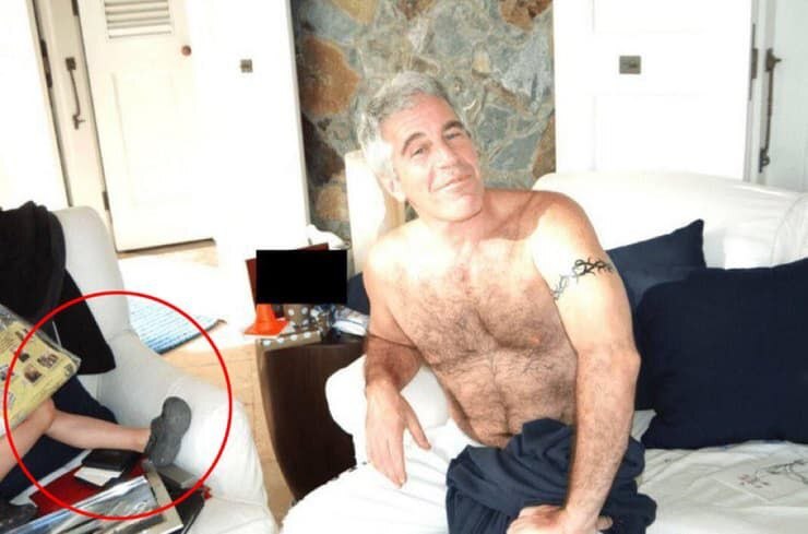 در یکی از عکسهای منتشرشده، جفری اپستین روی مبل نشسته و یک پای لاغر از کنار او بیرون زده است. مشخص نیست این پا متعلق به چه کسی است و بعضی حدسها این بود که ممکن است مربوط به یک قربانی خردسال باشد، اما قطعیت ندارد. رسانهها و کاربران شبکهها نسبت به این عکس واکنشهای شدیدی نشان دادند و آن را «تکاندهنده» توصیف کردند.