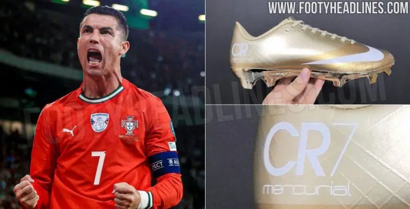 برای اولین بار تصاویری از کفش ویژه تولید نایکی برای استفاده کریستیانو رونالدو در جام جهانی ۲۰۲۶ منتشر شد. نایکی قرار است در آوریل یا می ۲۰۲۶، همزمان با تبوتاب جام جهانی، نسخهای ویژه و طلایی از کفش Nike Mercurial Vapor Superfly ۱ CR۷ را روانه بازار کند.