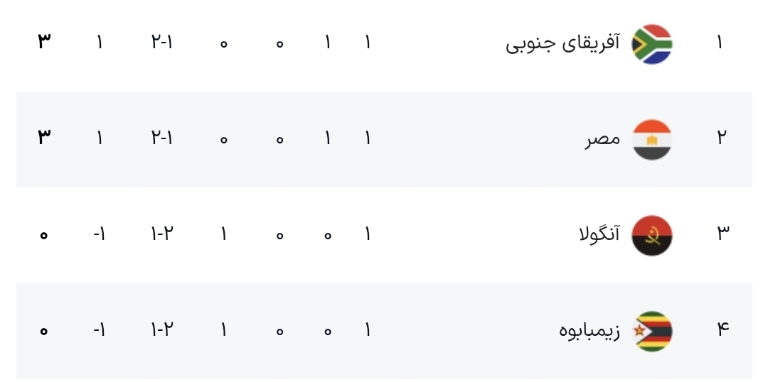 گلزنان: عمر مرموش (۶۴) و محمد صلاح (۱+۹۰) برای مصر / داپ (۲۰) برای زیمبابوه
