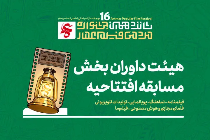 دبیرخانه جشنواره مردمی فیلم عمار اسامی هیئت داوران مسابقه افتتاحیه در بخشهای «برنامه تلویزیونی»، «نماهنگ»، «پویانمایی»، «فیلمنامه»، «فضای مجازی و هوش مصنوعی» و «فیلمما» شانزدهمین دوره از این جشنواره را اعلام کرد.