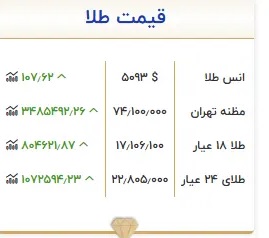 این افزایش ۵.۰۸ درصدی دقیقاً در نرخ طلای ۱۸ عیار نیز بازتاب یافت؛ به طوری که هر گرم طلای ۱۸ عیار با افزایش قابل توجه ۸۲۷ هزار تومانی نسبت به روز گذشته، به سطح ۱۷,۱۲۹,۲۰۰ تومان صعود کرد.طلای ۲۴ عیار نیز از این قافله عقب نماند و با رشدی بیش از یک میلیون تومان در هر گرم، روی رقم ۲۲,۸۳۶,۰۰۰ تومان ایستاد.