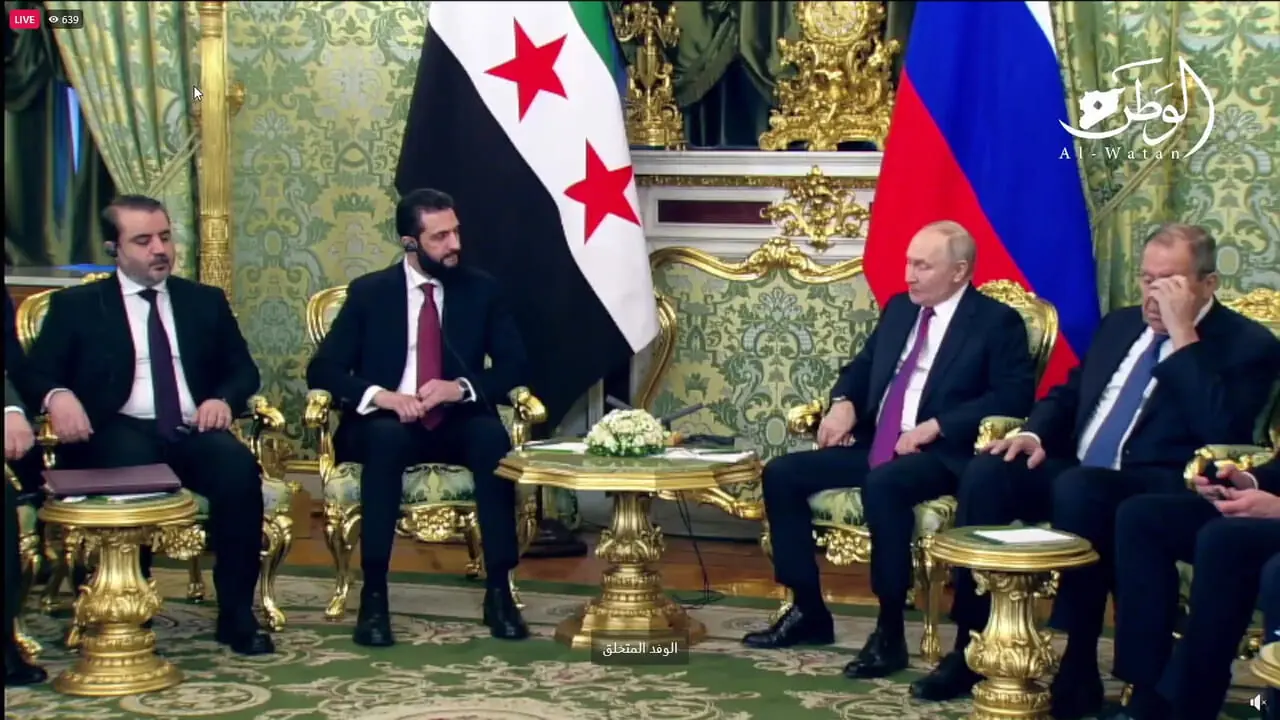چهارشنبه ۸ بهمن ۱۴۰۴ - ۱۷:۳۲ شناسهٔ خبر: 76927316 - سرویس بینالملل نسخه قابل چاپ منبع: فرارو | لینک خبر دیدار پوتین با جولانی در کاخ کرملین احمد الشرع (جولانی) که به مسکو سفر کرده است، لحظاتی قبل در کاخ کرملین با پوتین، رئیس جمهور روسیه دیدار و در حال گفتگو است. صاحبخبر - تبلیغات تبلیغات ∎