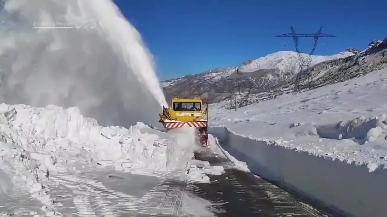 در یک مانور سریع و چابک، ماشین برفخوار در بازفت (راهدارخانه تاراز)، در دل جادههای سفیدپوش محور روستای لبد، مسیر خود را از چپ به راست تغییر میدهد و در همان لحظه، تودههای انبوه برف را همچون کمانی سفید و پُرشدت به آسمان پرتاب میکند.