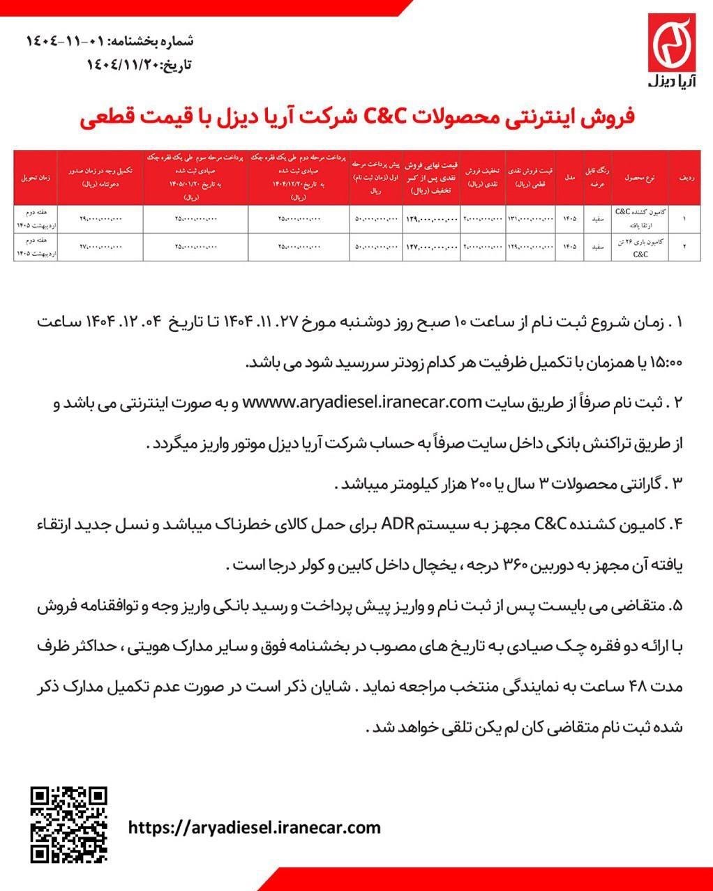 همچنین تامین قطعات و خدمات پس از فروش گسترده توسط آریا دیزل نماینده انحصاری C&C در ایران صورت می گیرد.