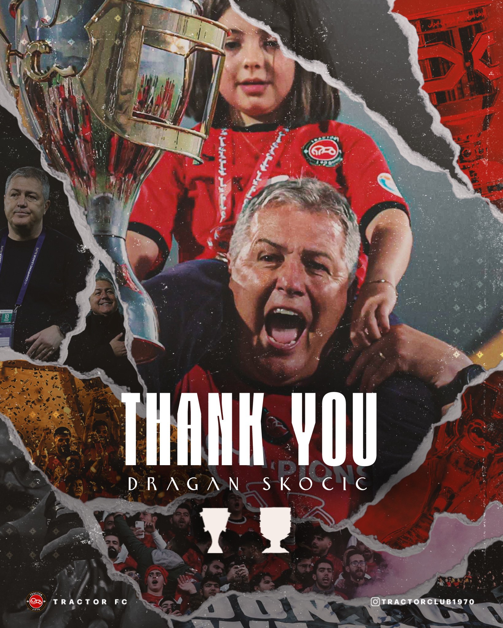 باشگاه تراکتور ضمن قدردانی از زحمات ایشان، برای آقای اسکوچیچ در ادامه مسیر حرفهای آرزوی موفقیت دارد.»