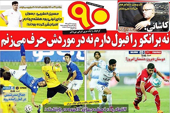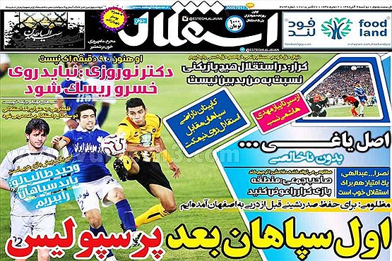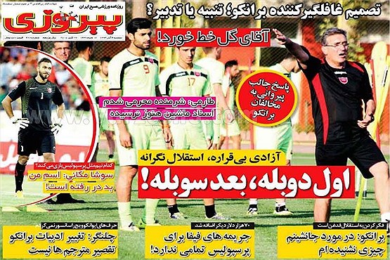 اما نکته جالب تیتر تقریبا مشابه های روزنامه های استقلال و پیروزی است. روزنامه استقلال تیتر زده:" اول سپاهان بعد پرسپولیس". روزنامه پیروزی هم تیتر زده :"اول دوبله ، بعد سوبله"!