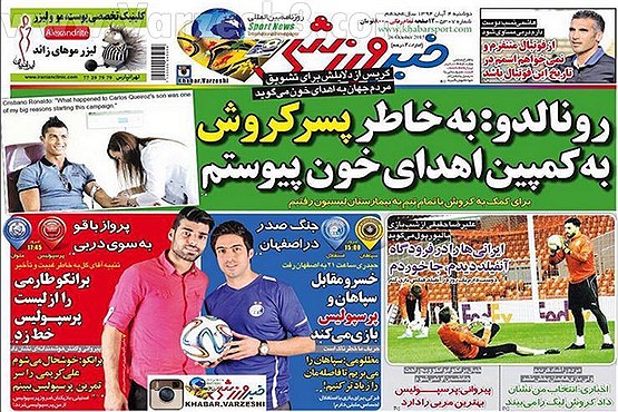 به گزارش گروه ورزشی جام جم آنلاین ، صفحه نخست روزنامه های ورزشی امروز به موضوغات مختلفی اختصاص دارد، از پیوستن کریس رونالدو به کمپین اهدای خون به خاطر پسر کی روش تا خط خوردن نام مهدی طارمی از فهرست پرسپولیس.