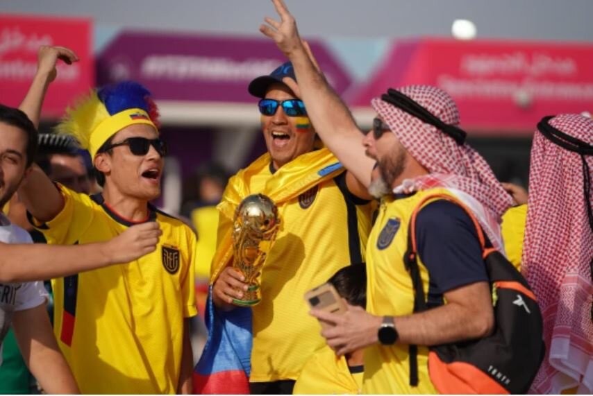 * هواداران قطری و اکوادوری خود را برای تماشا دیدار آغازین به ورزشگاه البیت رساندهاند.