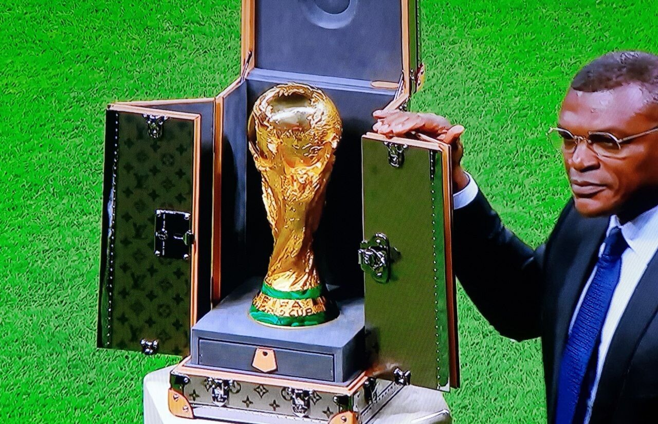 * از کاپ اصلی جام جهانی در مراسم رو نمایی و توسط جیانی اینفانتینیو، تحویل قطریها شد.